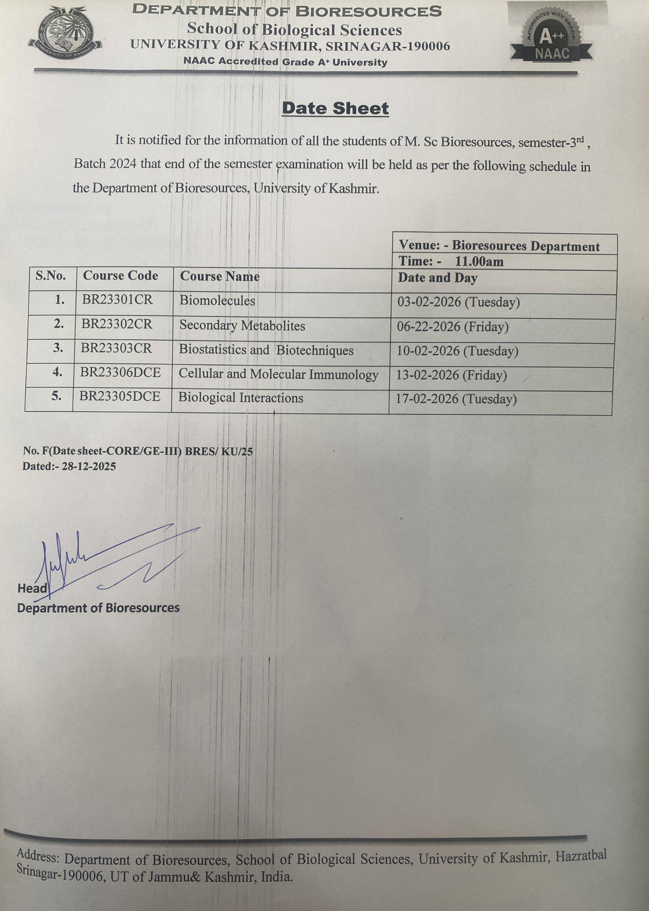 Date sheet for the CORE/DCE examination of M.Sc 3rd Semester, Batch-2024 0000000000000000000000000000000000000000000000000000000000000000000000000000000